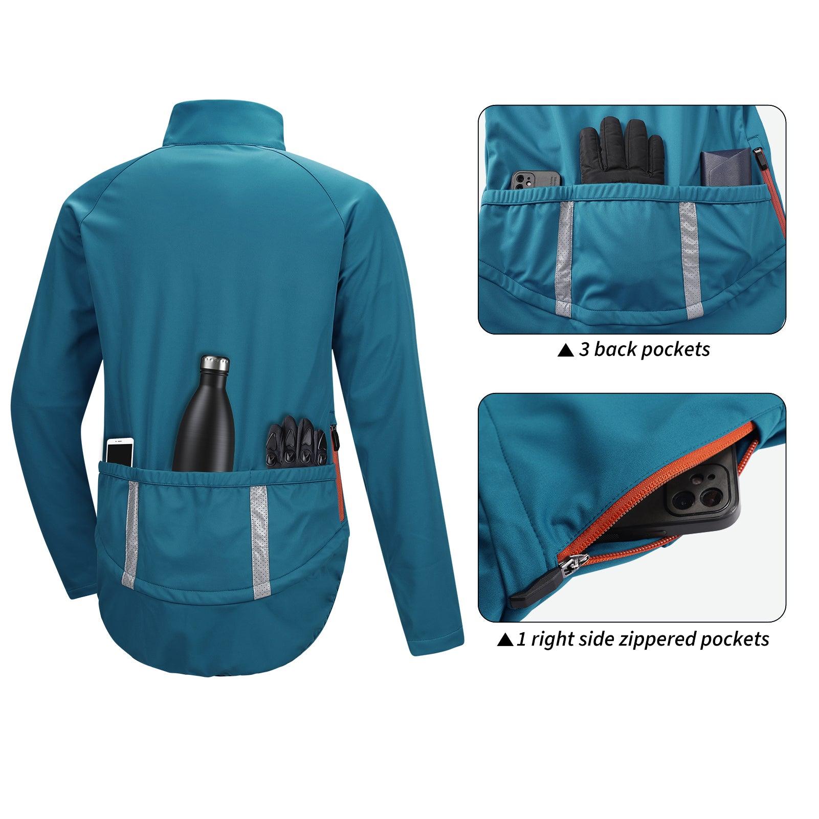 - 4 Utility Pockets: 33,000ft long sleeve bike jackets for men have 3 rear pockets, you can put Bottle, winter gloves, a neck gaiter, and other cold-weather gear providing an ample storage option for the wearer. One large zipper pocket on the back can protect your cellphone. (Zipper pocket size 7 * 5.5 inch)