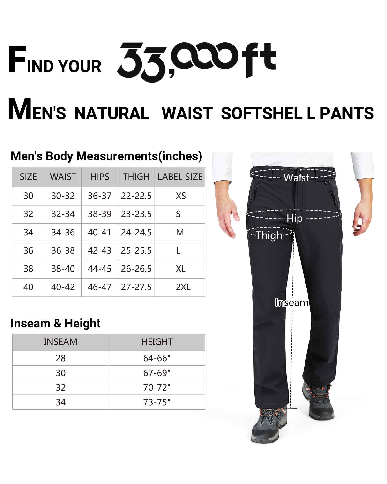 - Warm and Windproof: 33,000ft Men's ski pants with a comfy fleece lined to keep you warm. Excellent wind-resistant fabric can block the wind and water.