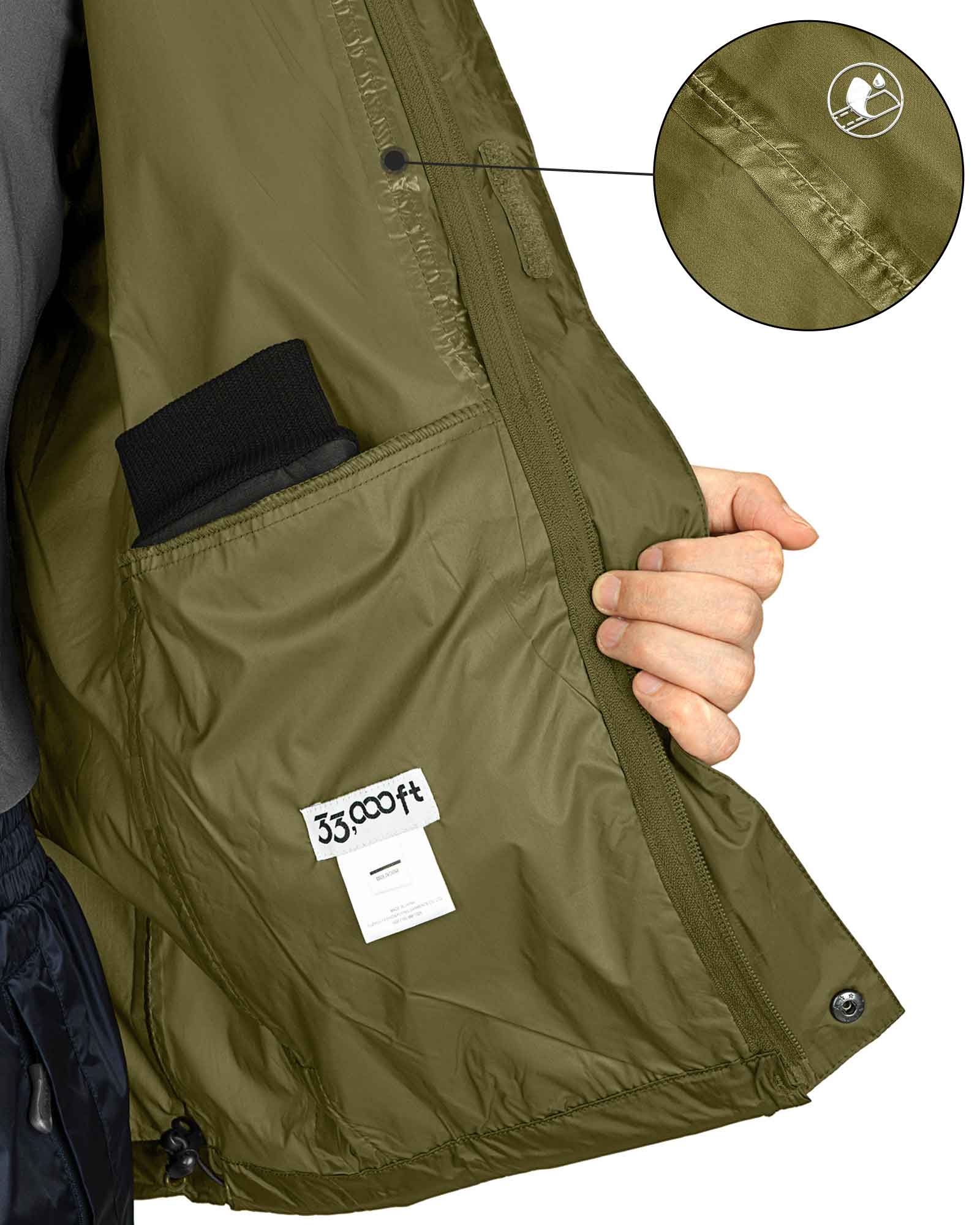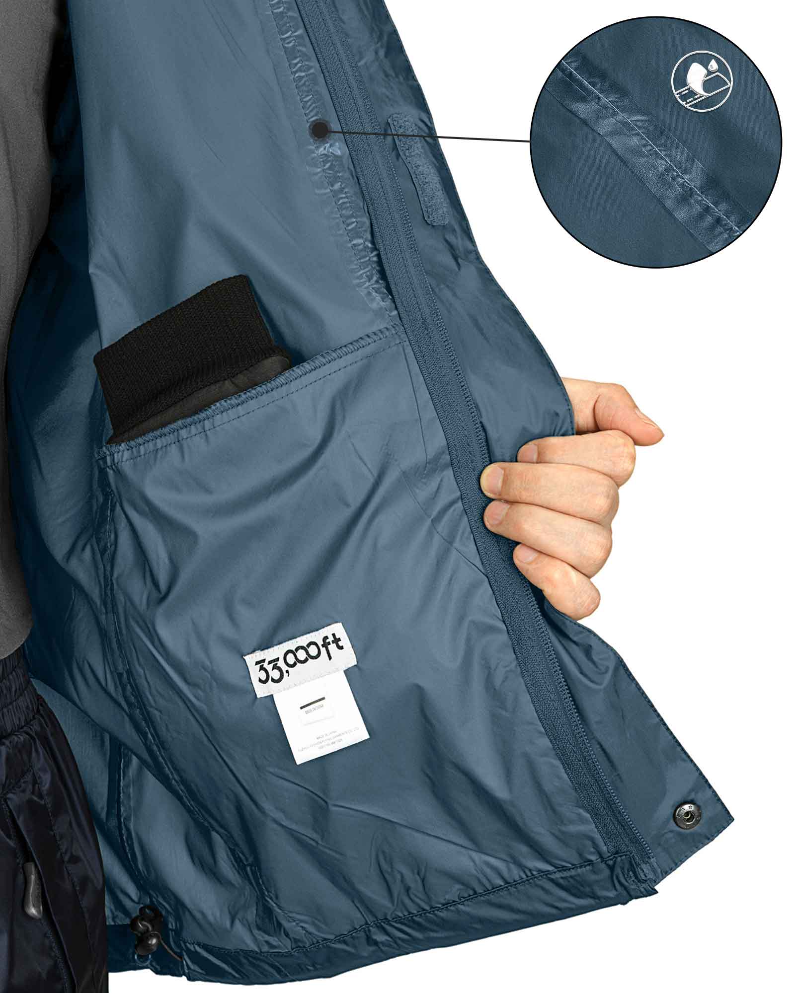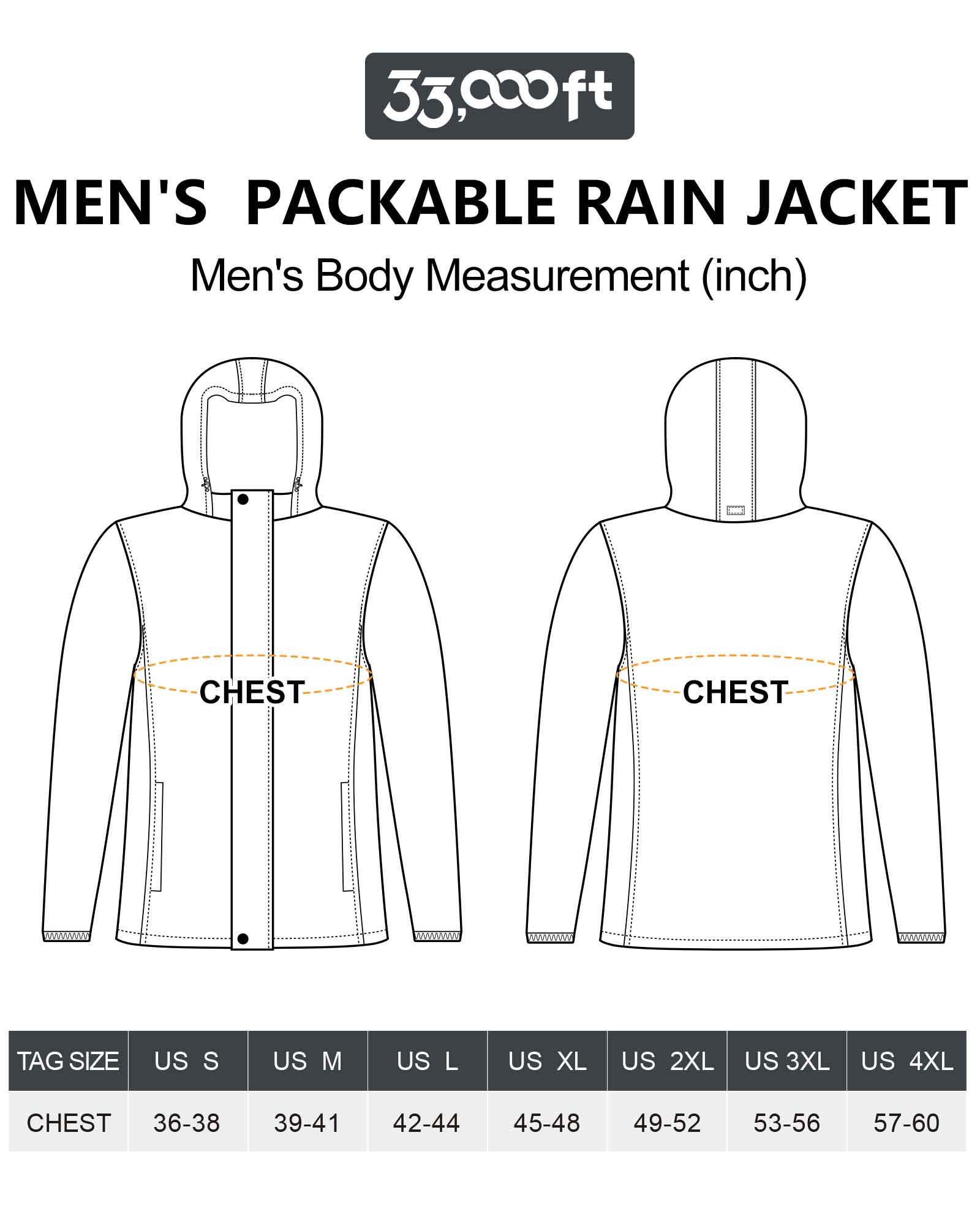 0.70 lbs 5000mm W/P Index 5000 Level Breathable Men's Packable Rain Shell Jacket with 4 Pockets
