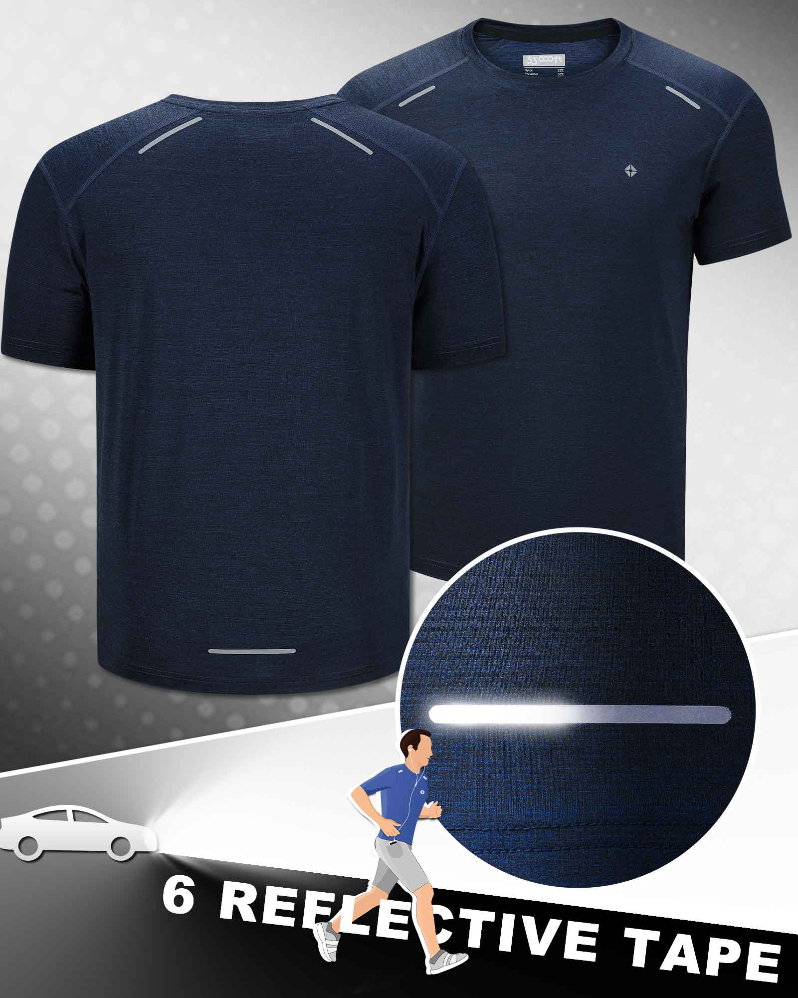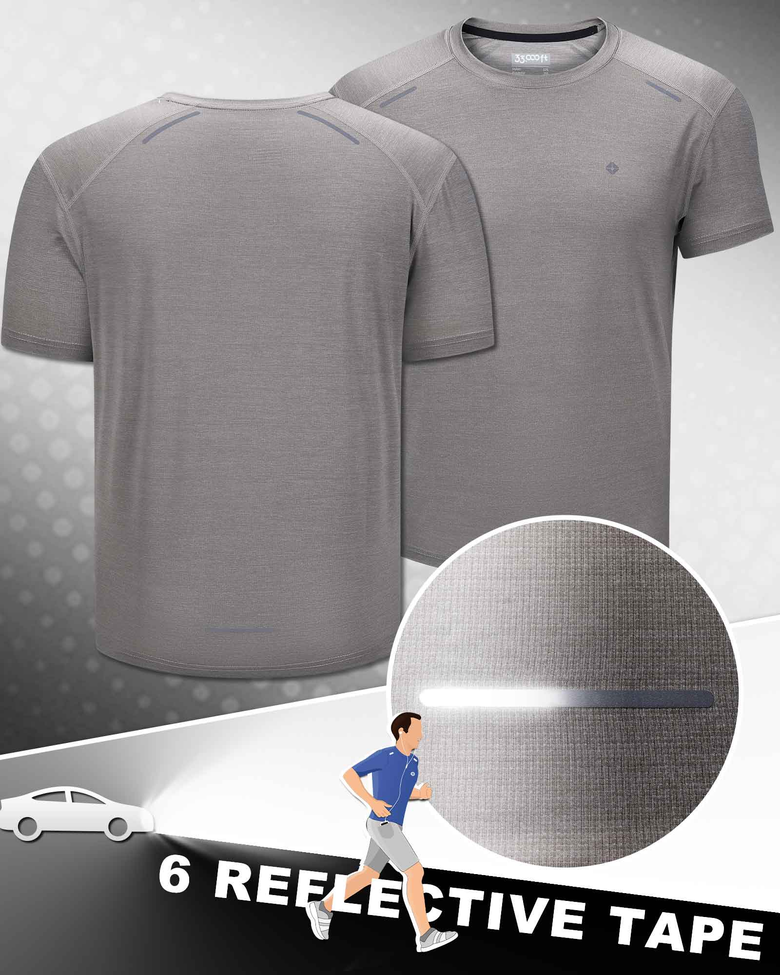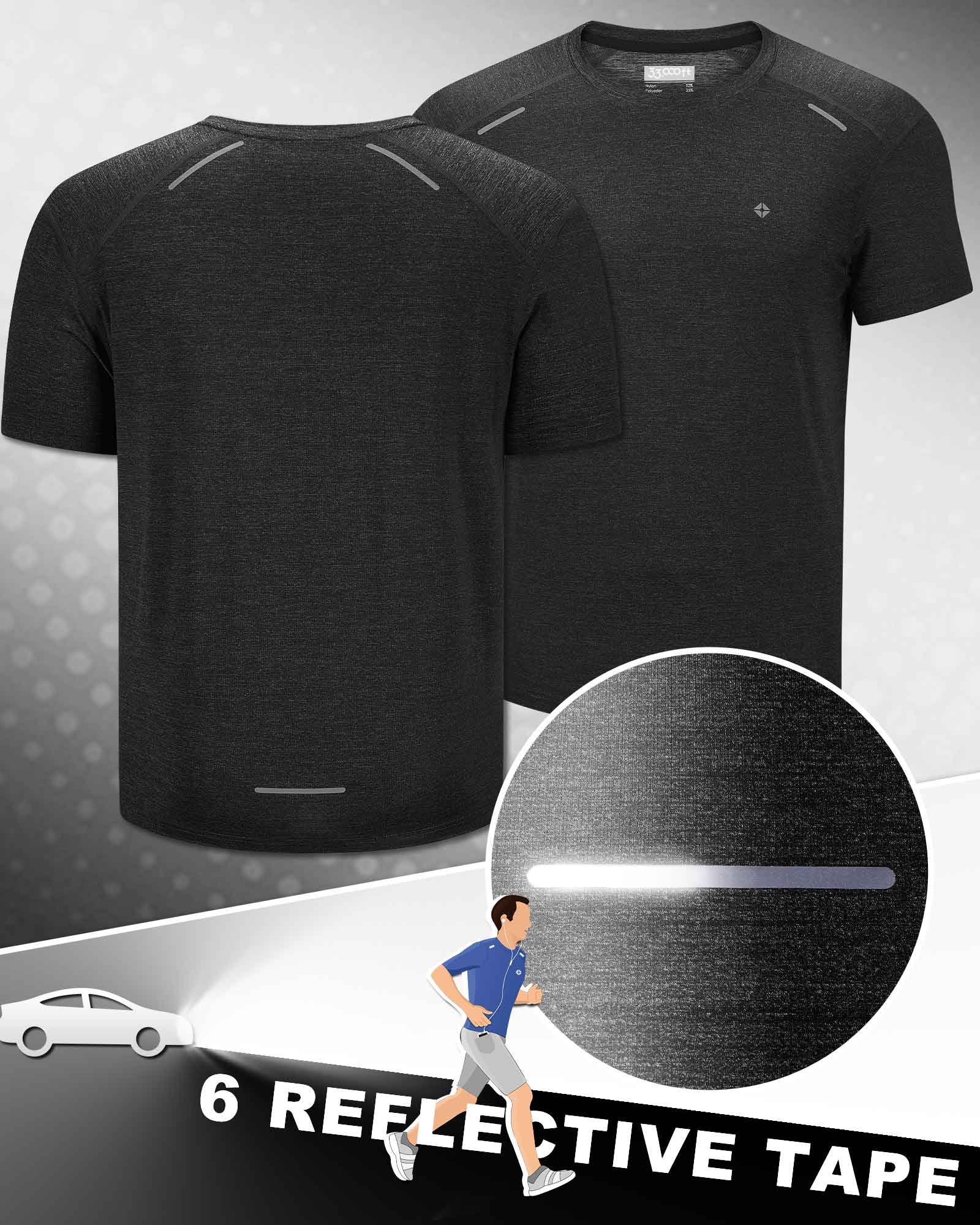 - Reflective Design: This workout shirt for men with reflective tapes is used to Increase visibility in low-light conditions.Matched with a sports round neck, sharp hem, and elastic short sleeve design to show that you can enjoy high flexibility in the process of sports, and you can experience all kinds of sports in multiple directions, displaying perfect body lines.