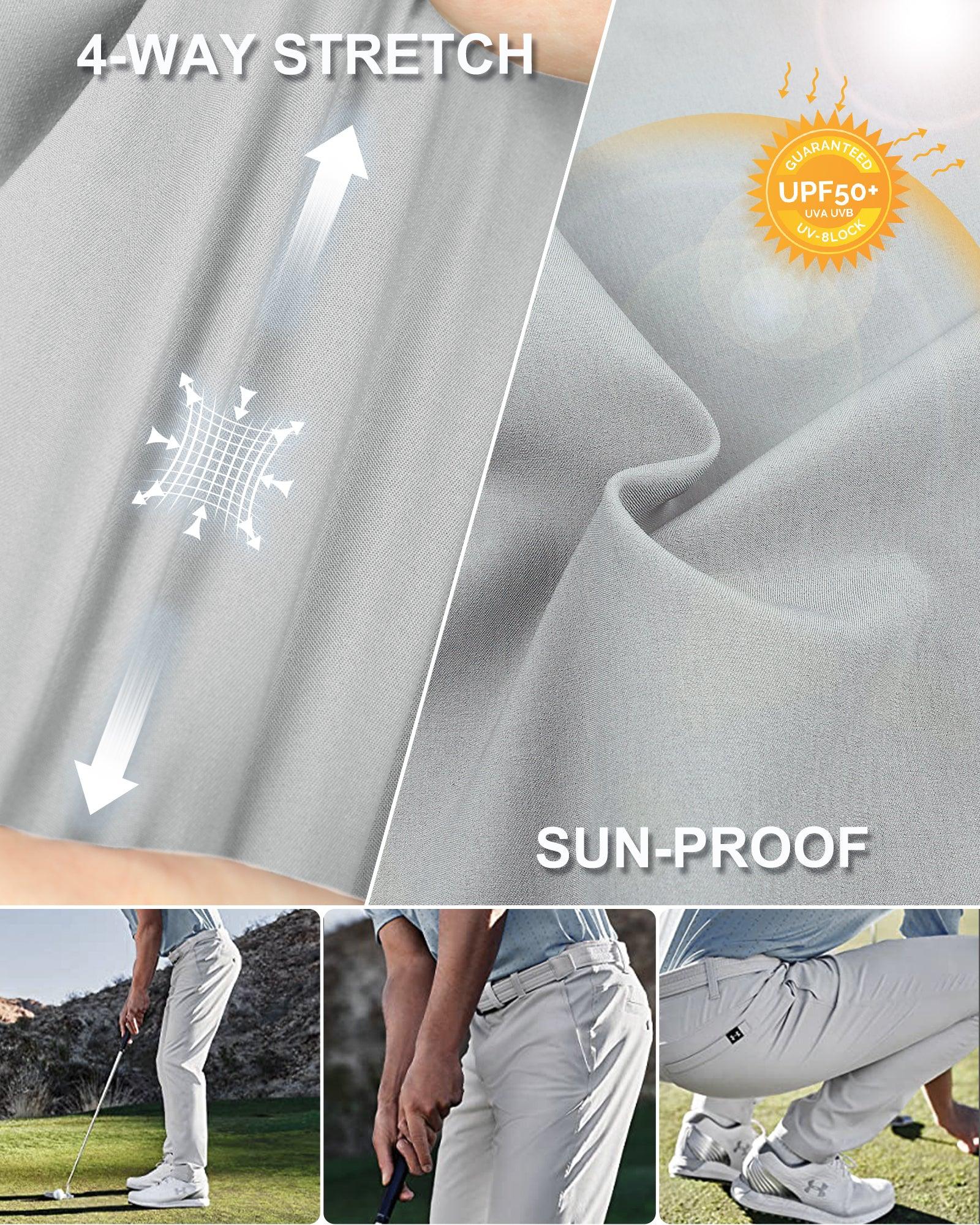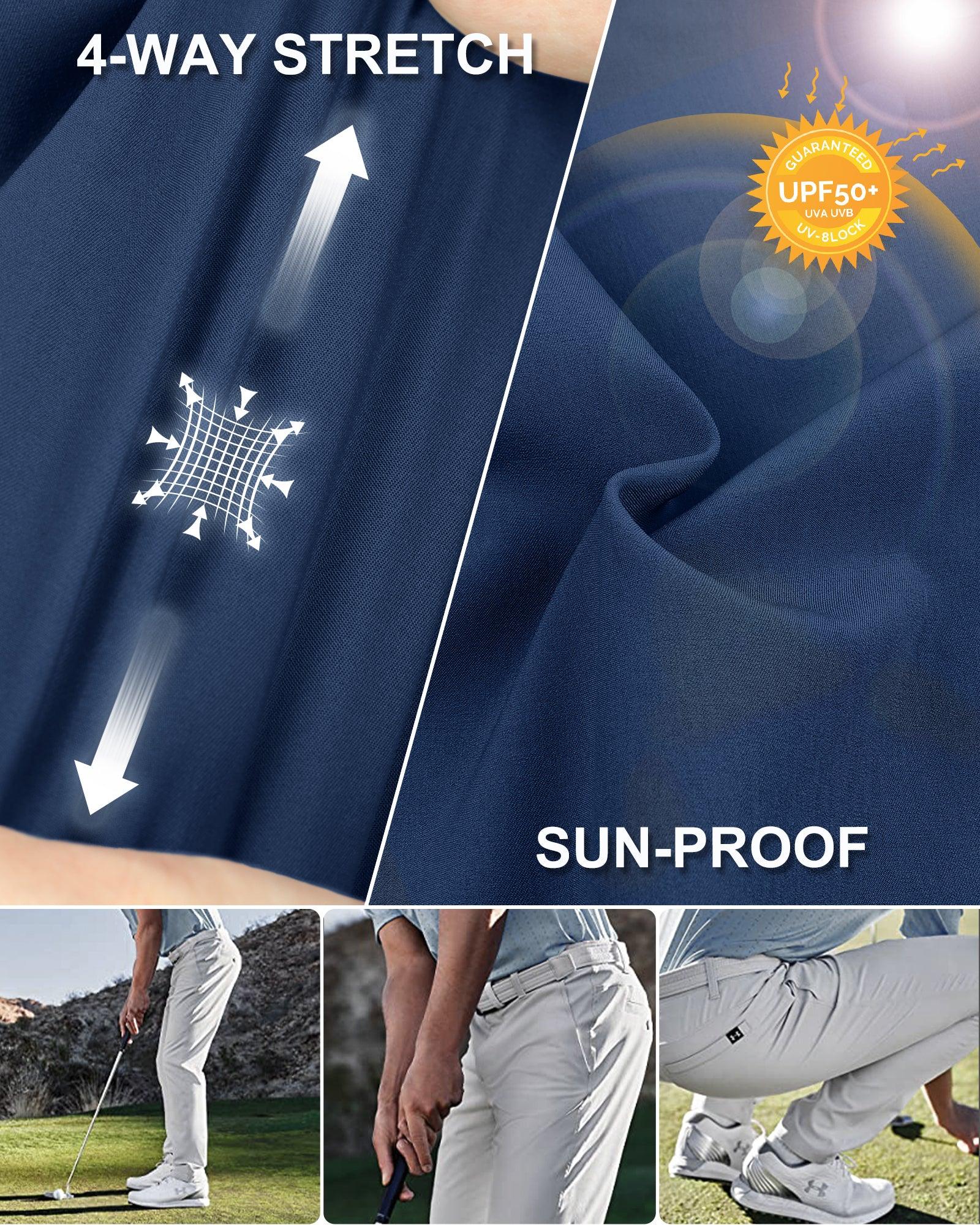 - Sunproof: 33,000ft men's golf pants slim-fit stretch built-in UPF 50 sun protection prevents harmful UV rays from penetrating the fabric of this golf apparel, helping to protect covered skin on sunny days spent outdoors.