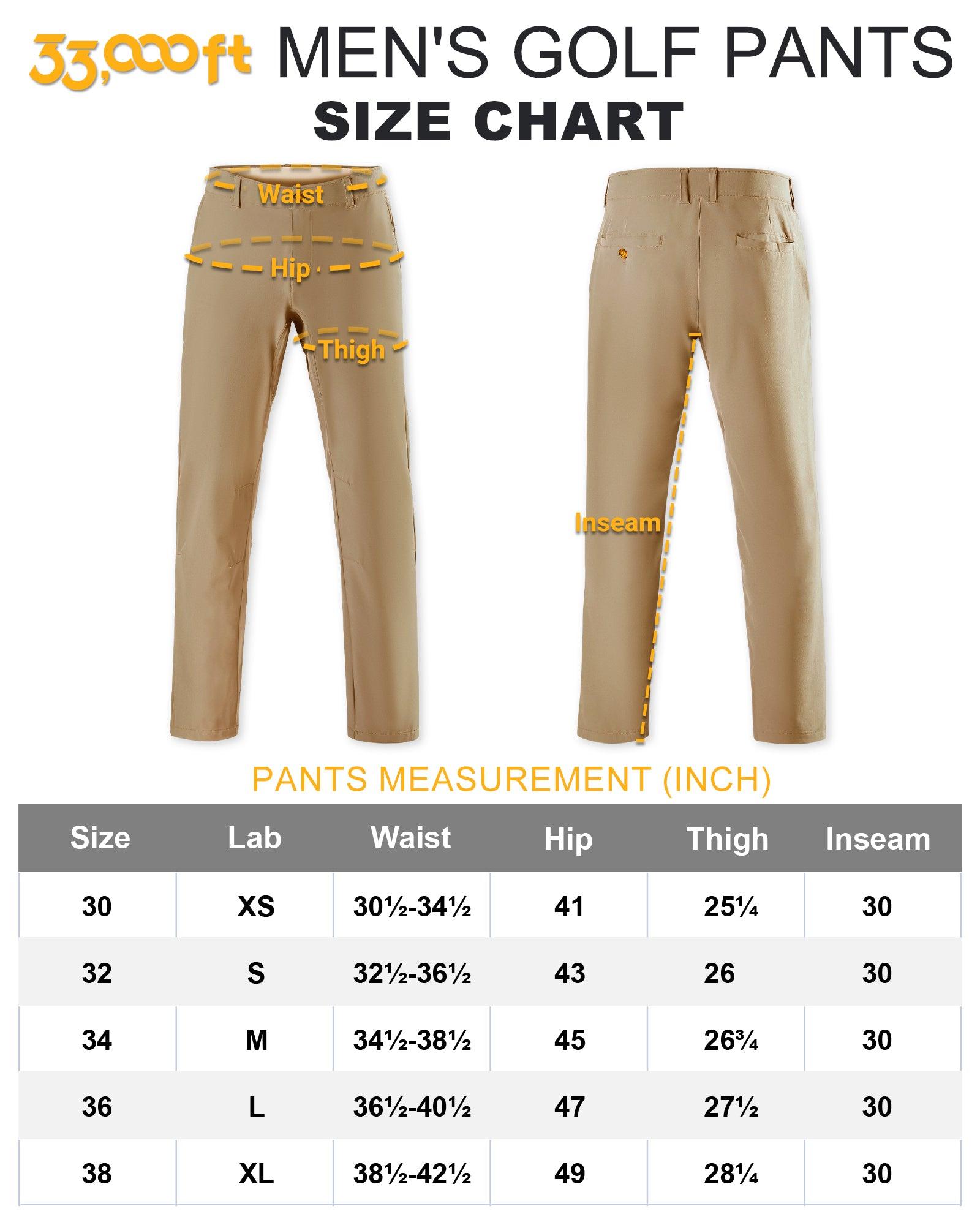 - Comfort Stretch: 33,000ft Stretch golf pants for men are made of 4-way stretch fabric to deliver flexible comfort that fits your active lifestyle.